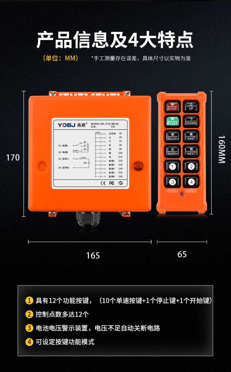 產(chǎn)品廣泛應(yīng)用于機(jī)械、建筑、冶金、汽車、化工、鐵路、施工等可實(shí)現(xiàn)遙控操作的設(shè)備及場(chǎng)所。