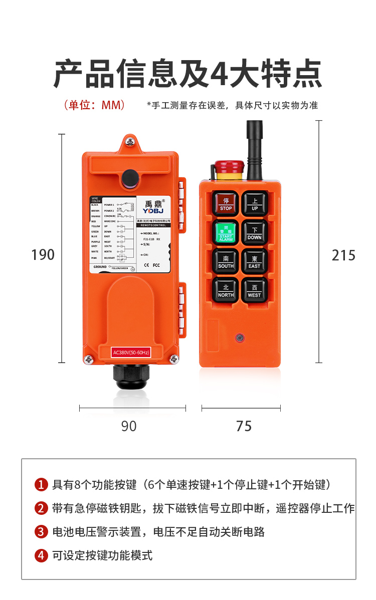 產(chǎn)品廣泛應(yīng)用于機(jī)械、建筑、冶金、汽車、化工、鐵路、施工等可實(shí)現(xiàn)遙控操作的設(shè)備及場(chǎng)所。