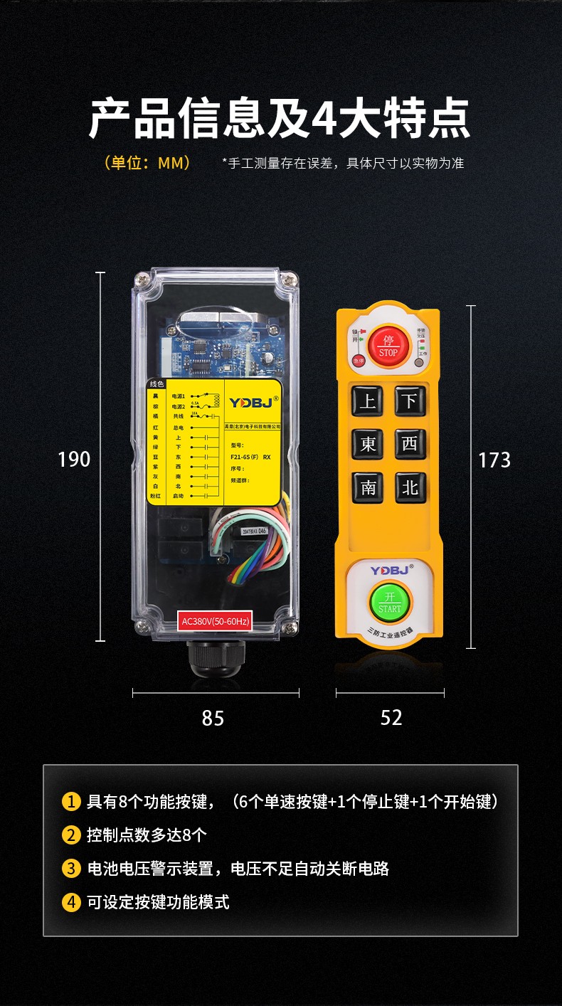 產(chǎn)品廣泛應(yīng)用于機(jī)械、建筑、冶金、汽車、化工、鐵路、施工等可實(shí)現(xiàn)遙控操作的設(shè)備及場(chǎng)所。
