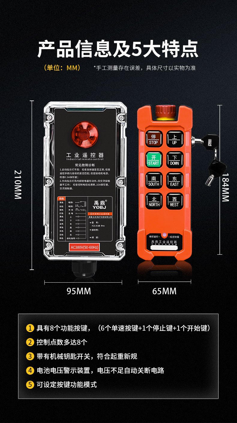 產(chǎn)品廣泛應(yīng)用于機(jī)械、建筑、冶金、汽車、化工、鐵路、施工等可實(shí)現(xiàn)遙控操作的設(shè)備及場所。